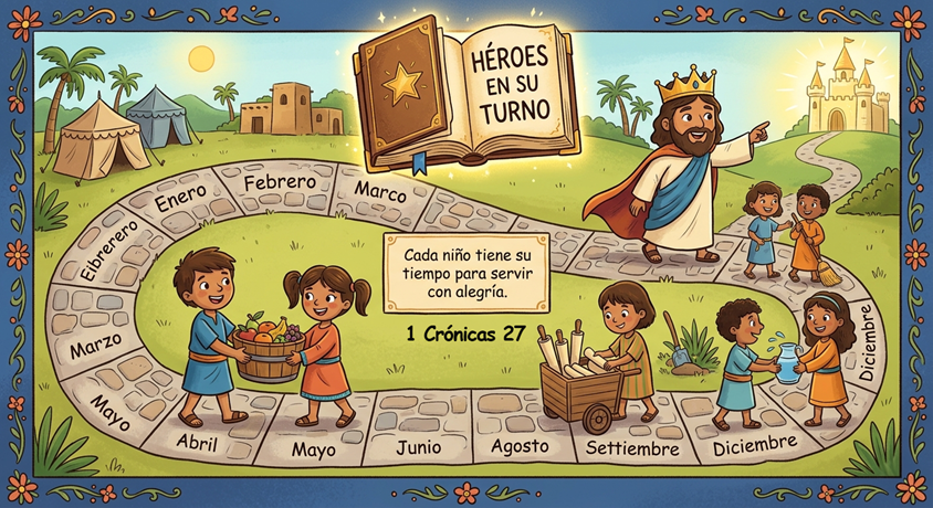 «Querido Jesús, gracias por invitarme a ser parte de tu equipo. Ayúdame a ser organizado y a cumplir con alegría las tareas que me tocan hoy. Quiero servirte con amor, así como los valientes del Rey David. Amén.»