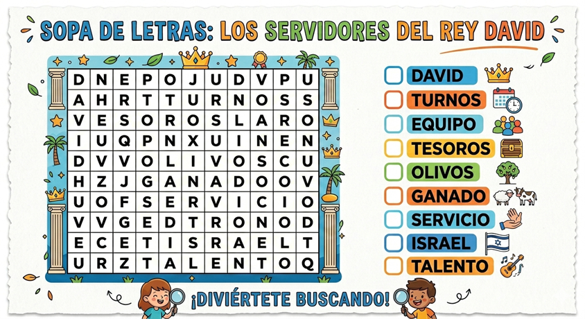 ¿Sabías que el Rey David era muy organizado? Él no quería que una sola persona hiciera todo el trabajo pesado. Por eso, creó un plan: cada grupo de personas tenía un turno para servir durante un mes al año.
