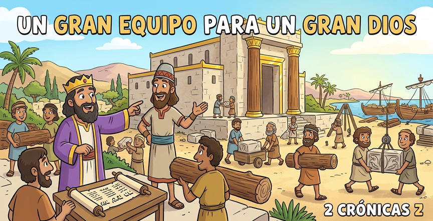 Después de pedir sabiduría, Salomón puso manos a la obra. Sabía que para construir el Templo de Dios necesitaba los mejores materiales y a las personas más talentosas. No intentó hacerlo todo él solo; pidió ayuda al rey Hiram, quien le envió madera de cedro preciosa y a un hombre muy hábil llamado Hiram-abí, que sabía trabajar el oro, la plata y las telas.