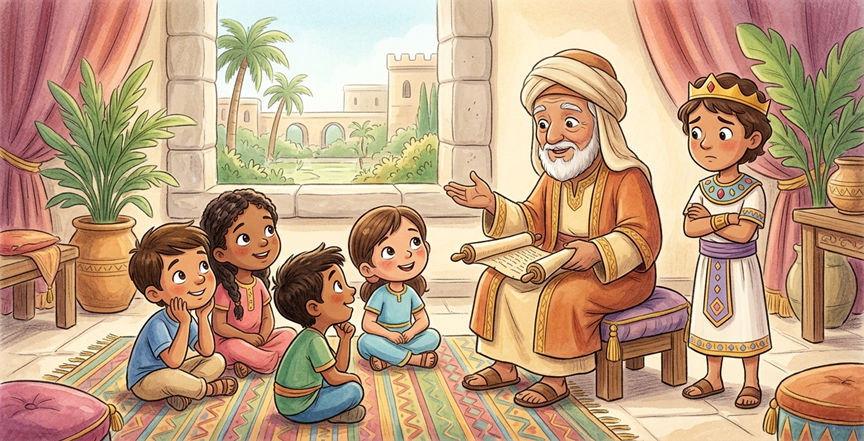 Roboam nos enseña que ser un líder no es ser el más fuerte, sino ser el más amable. Dios quiere que escuchemos a las personas que nos aman (como nuestros papitos y abuelos) porque ellos tienen la sabiduría de Dios en su corazón. ¡Las palabras dulces y los buenos consejos mantienen a los amigos unidos!